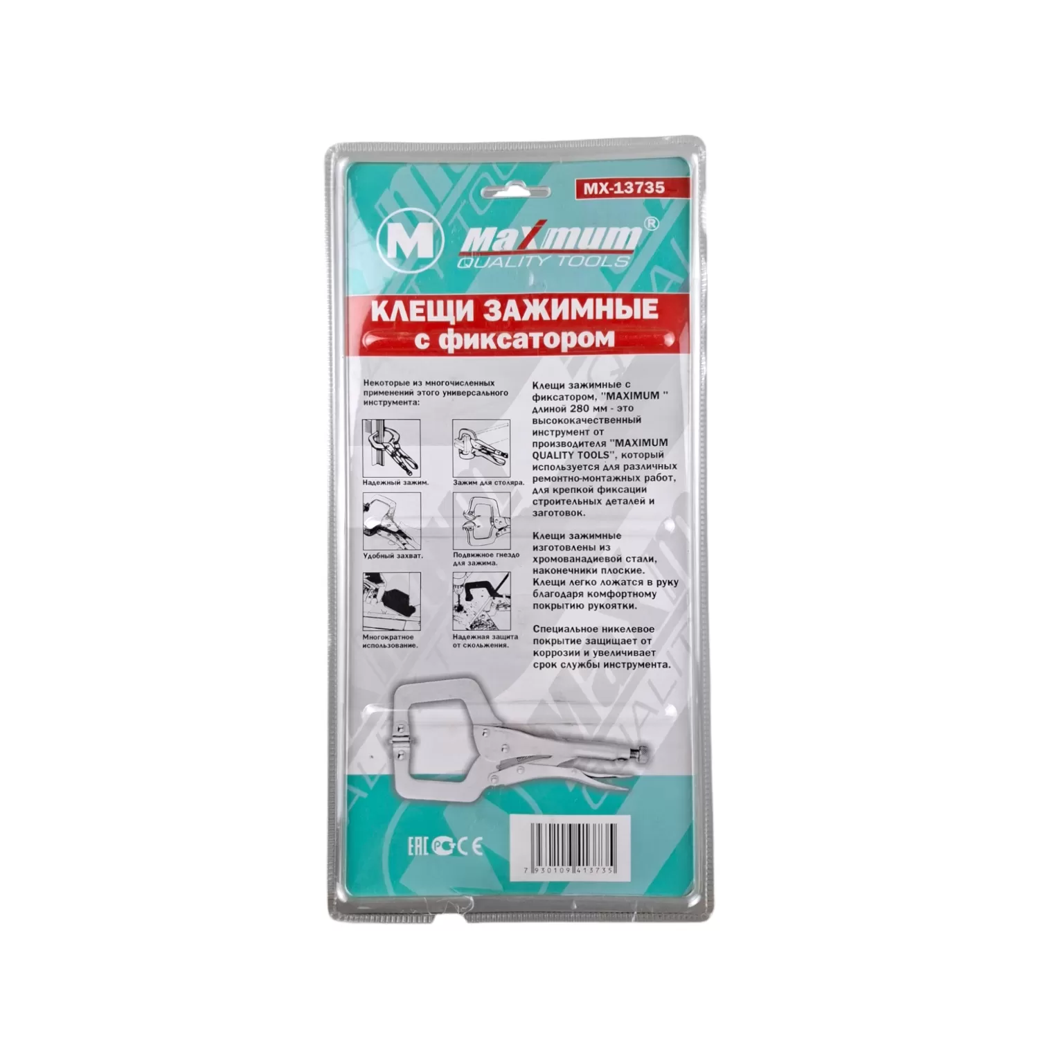 Мощные зажимные клещи длиной 280 мм с фиксатором и подвижными губками. Идеальный помощник для сварки, столярных и слесарных работ, обеспечивающий надежную фиксацию деталей сложной формы.